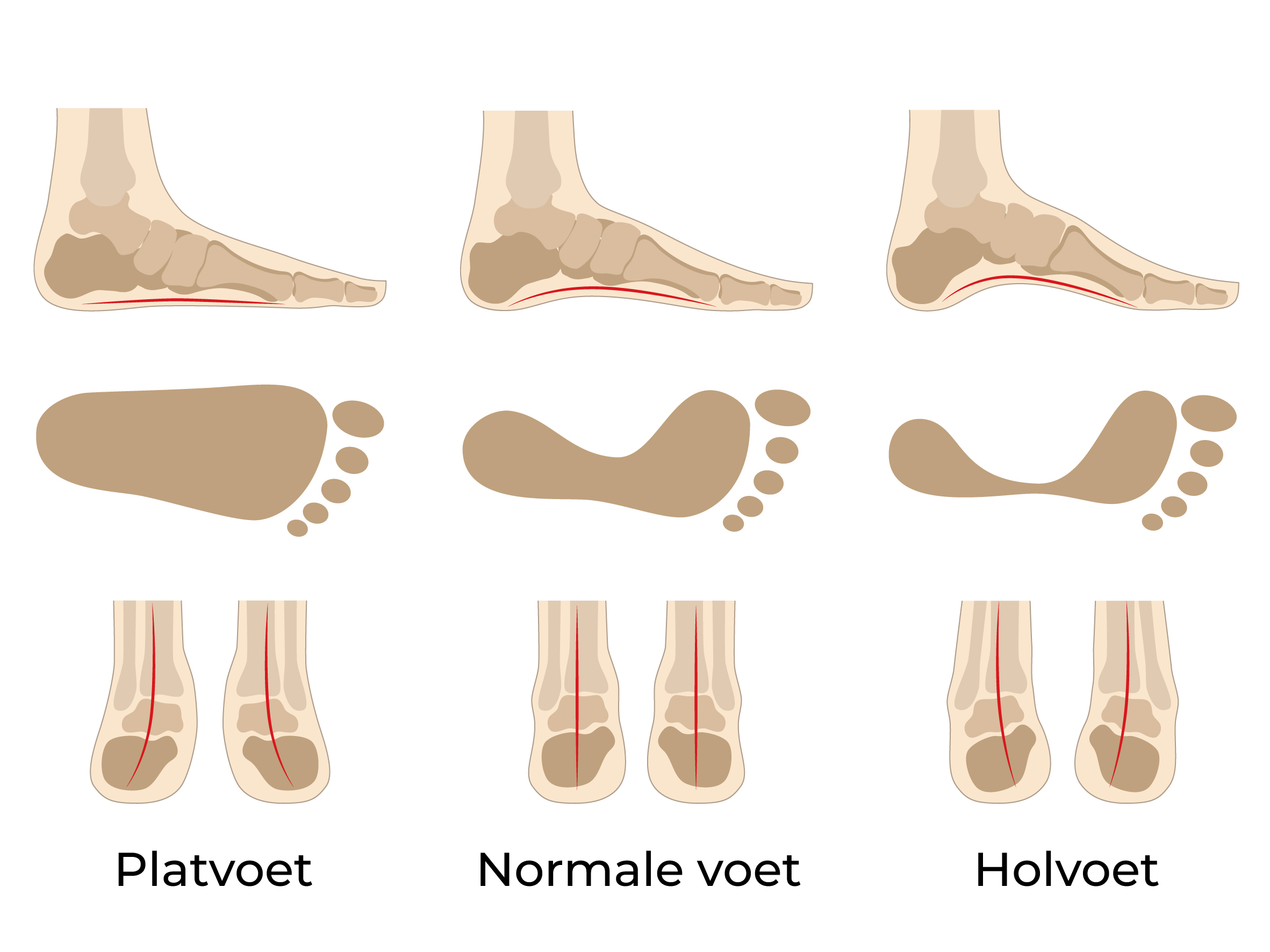 Bij platvoeten (pedes plani) of holvoeten (pedes cavi)